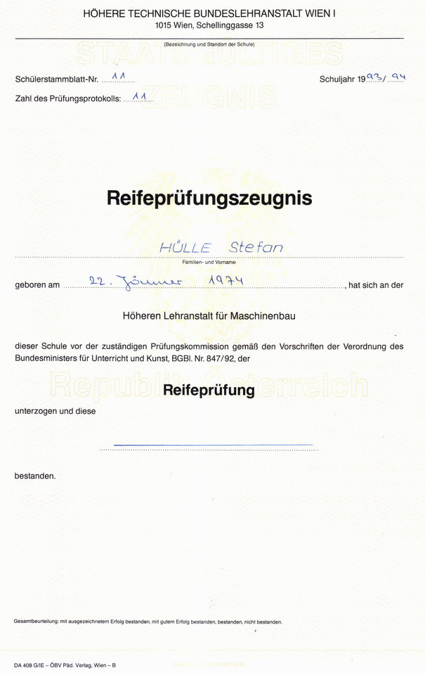 HTL für Maschinenbau & Matura Schellinggasse 14, 1010 Wien |